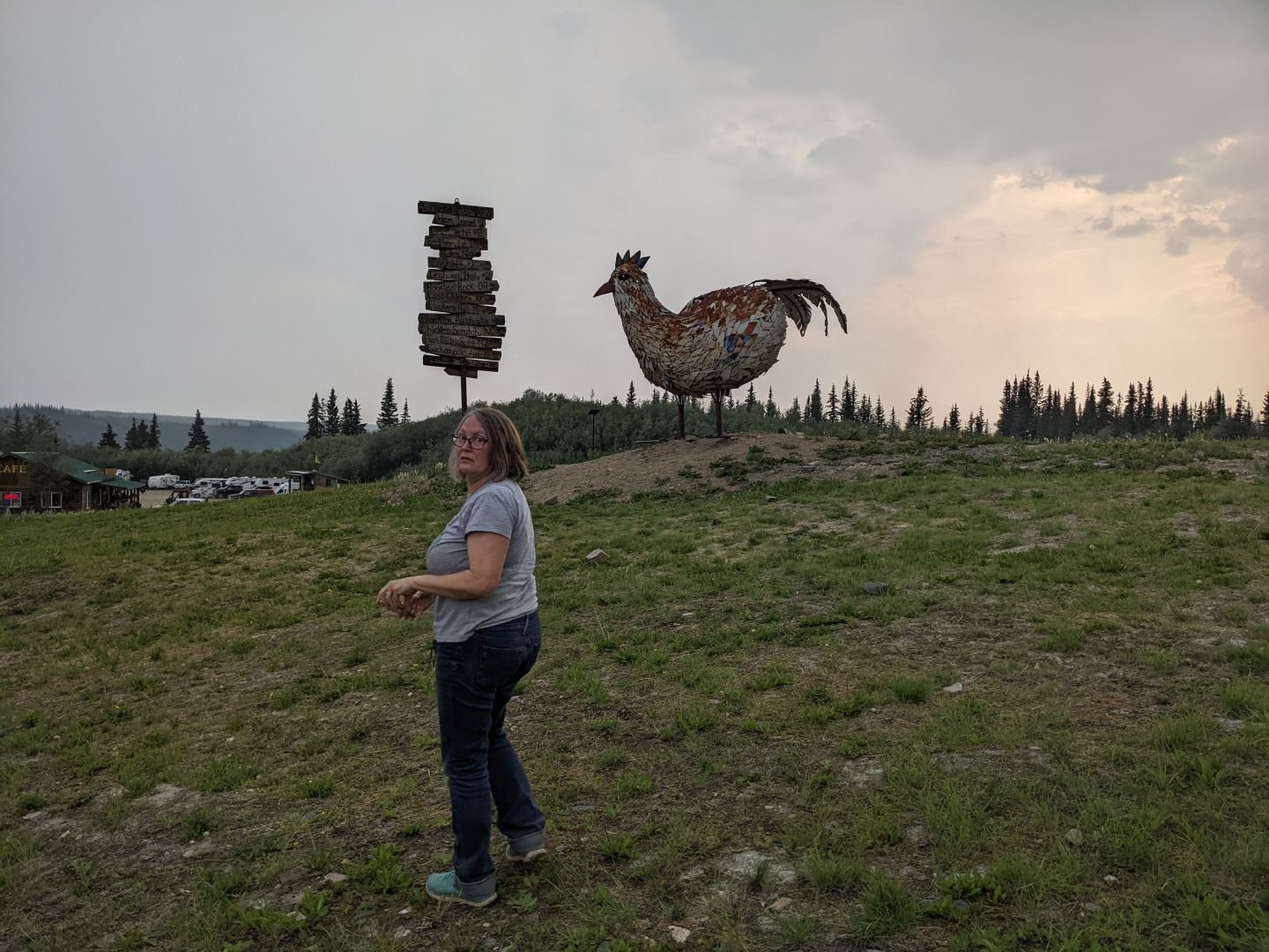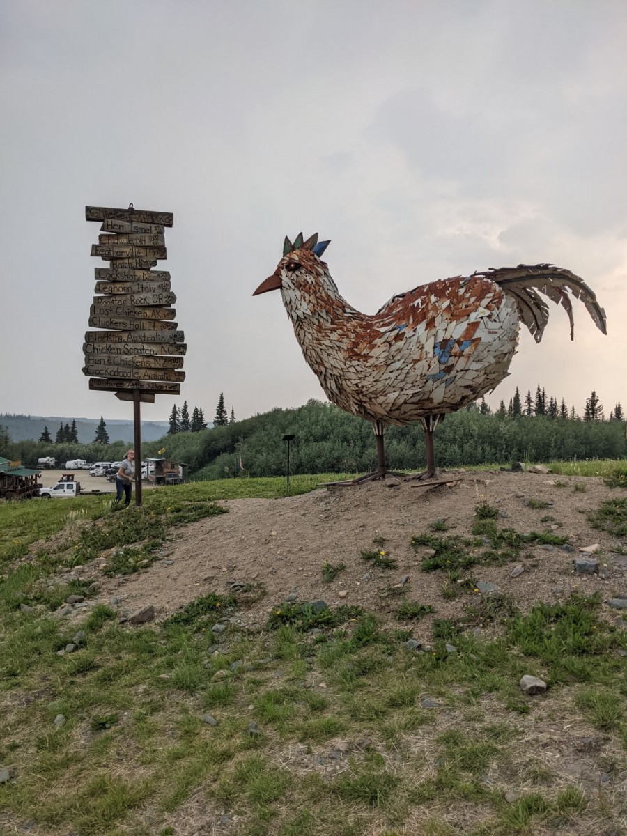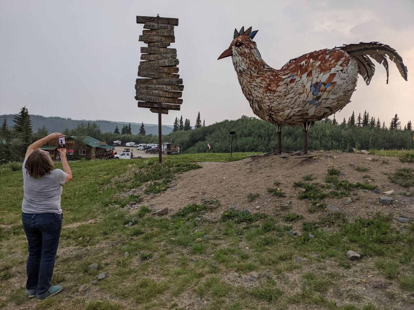The gas station in Eagle didn’t take credit cards, and I didn’t have enough cash to buy gas. Once it became clear to me that we weren’t going to make it to Chicken, I desperately remembered that I had 10 gallons of gas on the roof, and poured that into the tank. So the expensive Canadian gas from Ft McPherson came to good use.